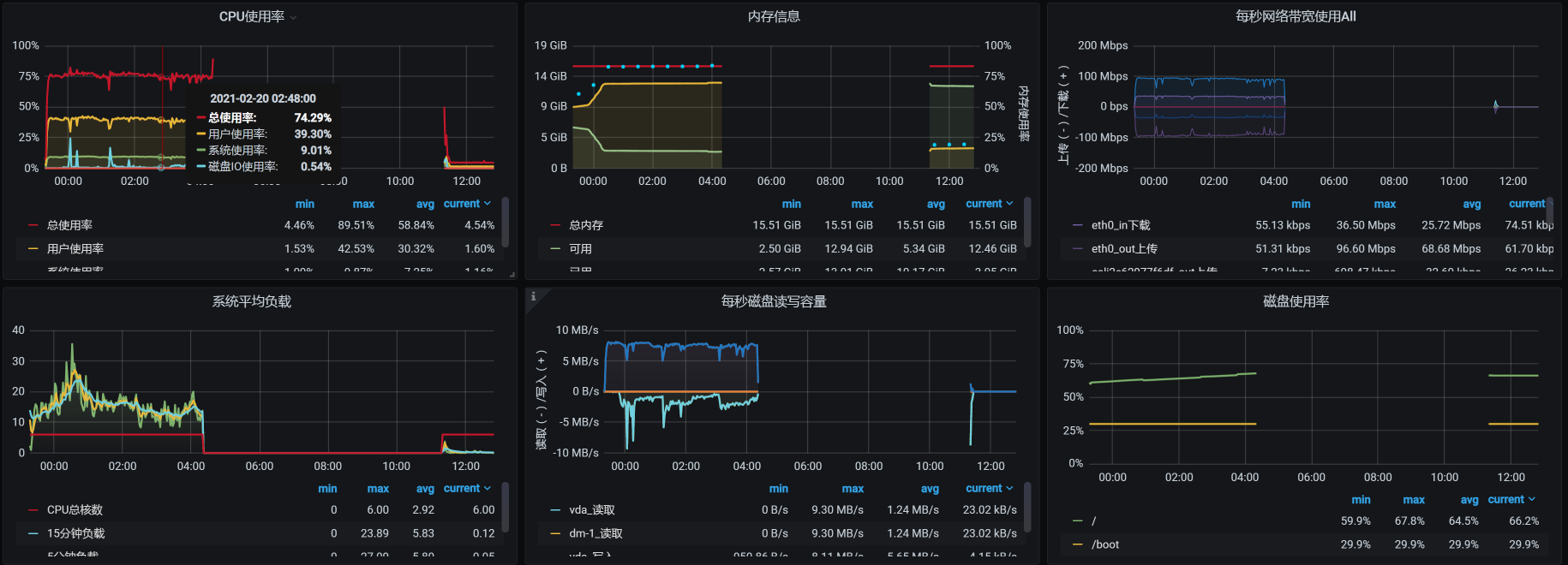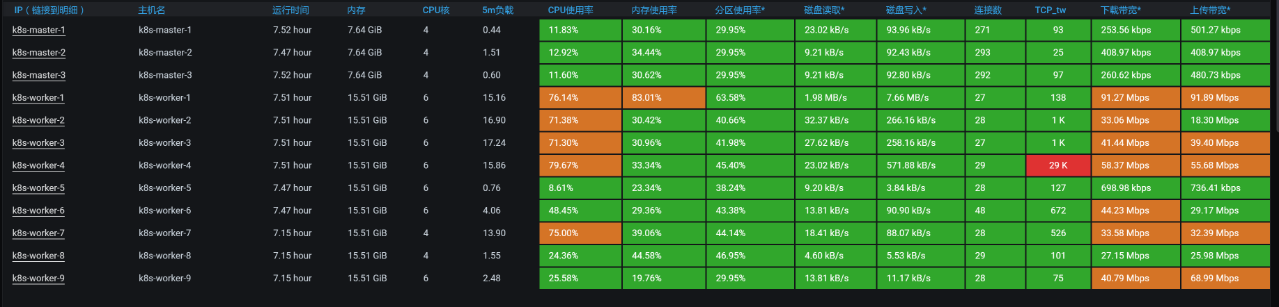 你看,在运行期间,好几个worker的CPU资源都在70%以上,这样的数据中规中矩,还不是我们关注的重点。因为对于稳定性场景来说,资源只要能撑得住就行了。