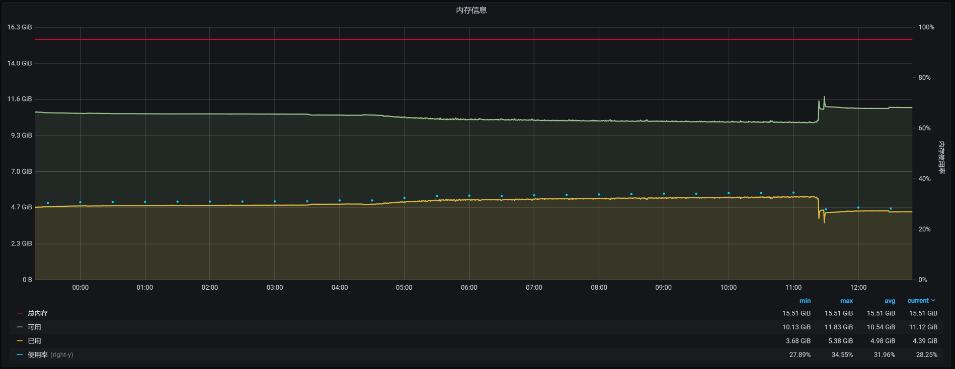 这个结果看起来不错,虽说TPS有掉下来的时候,但是总体上是稳定的。运行时间也超过了12小时。