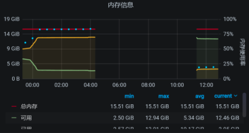 从worker-1的资源上来看,如果worker-1是因为内存用得多被杀掉,那应该在12点20分到12点30分之间就被杀掉了,因为上面的内存曲线在12点半左右之后就没有大的波动了。