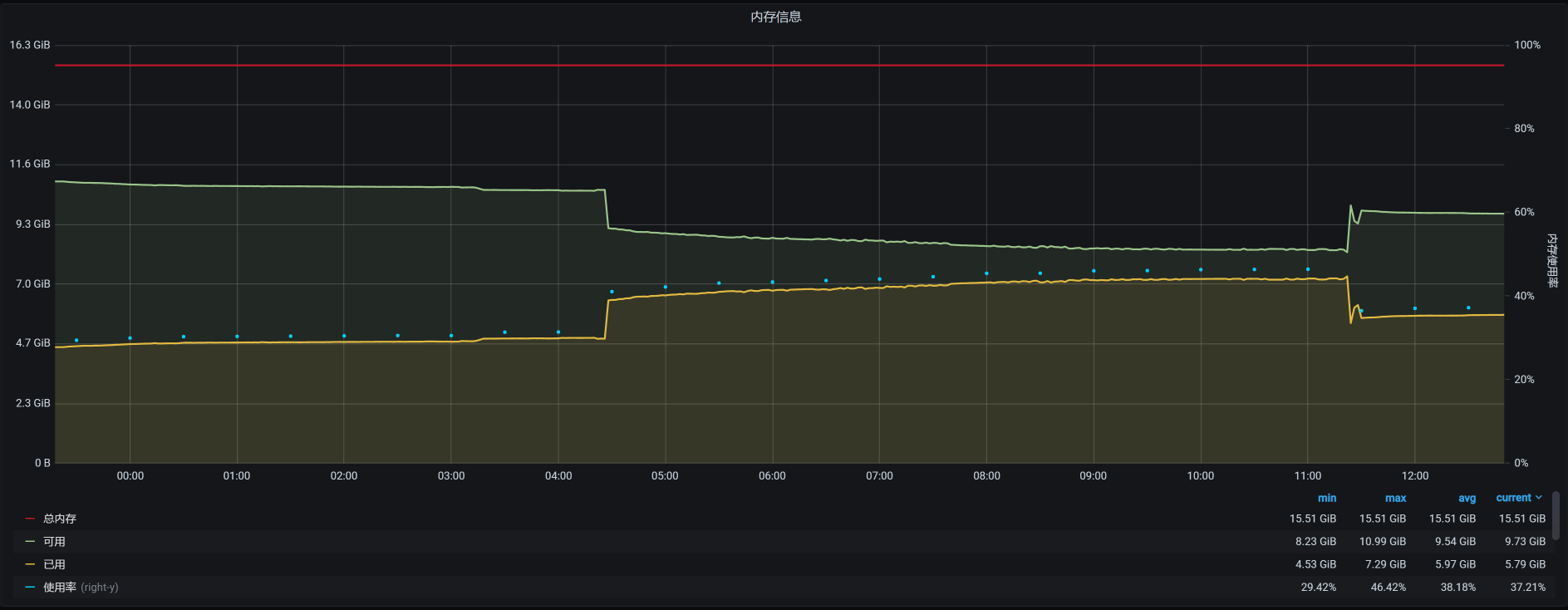 而在上次的场景运行之前,我们并没有重启过虚拟机,也就是说前面已经有了一段时间的内存消耗。对于稳定性场景来说,增删改查都是有的,数据量也在不断增加,所以内存会使用得越来越多。