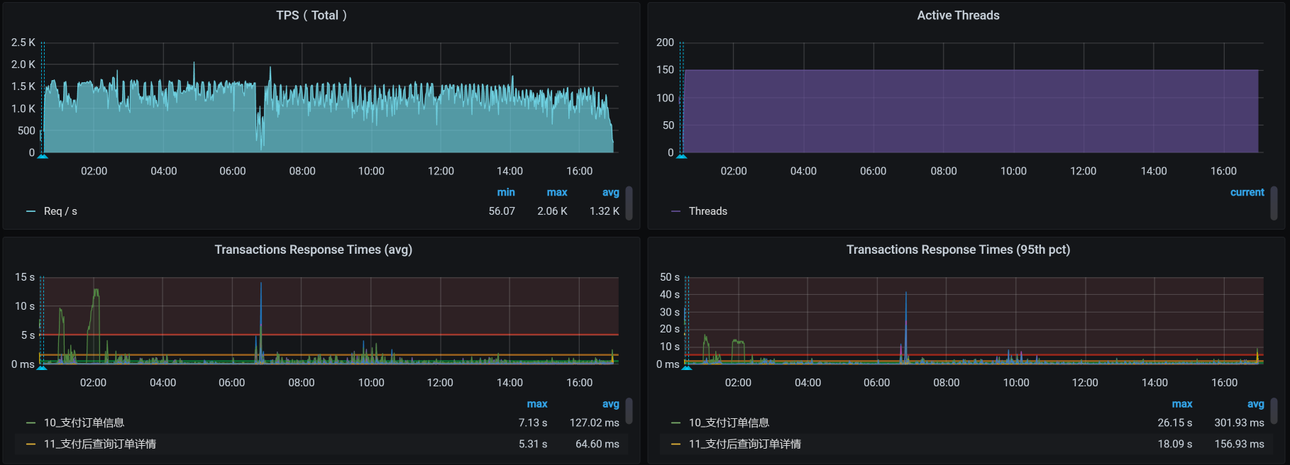 经过一翻折腾,我们再次把数据库启动,等应用都正常连上之后,再次把稳定性场景运行起来,看到了这样的结果: