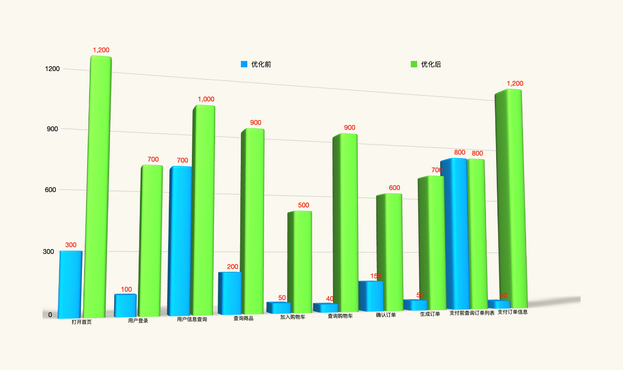 我们先画出每个业务的基准场景,在优化前和优化后的TPS对比图表: