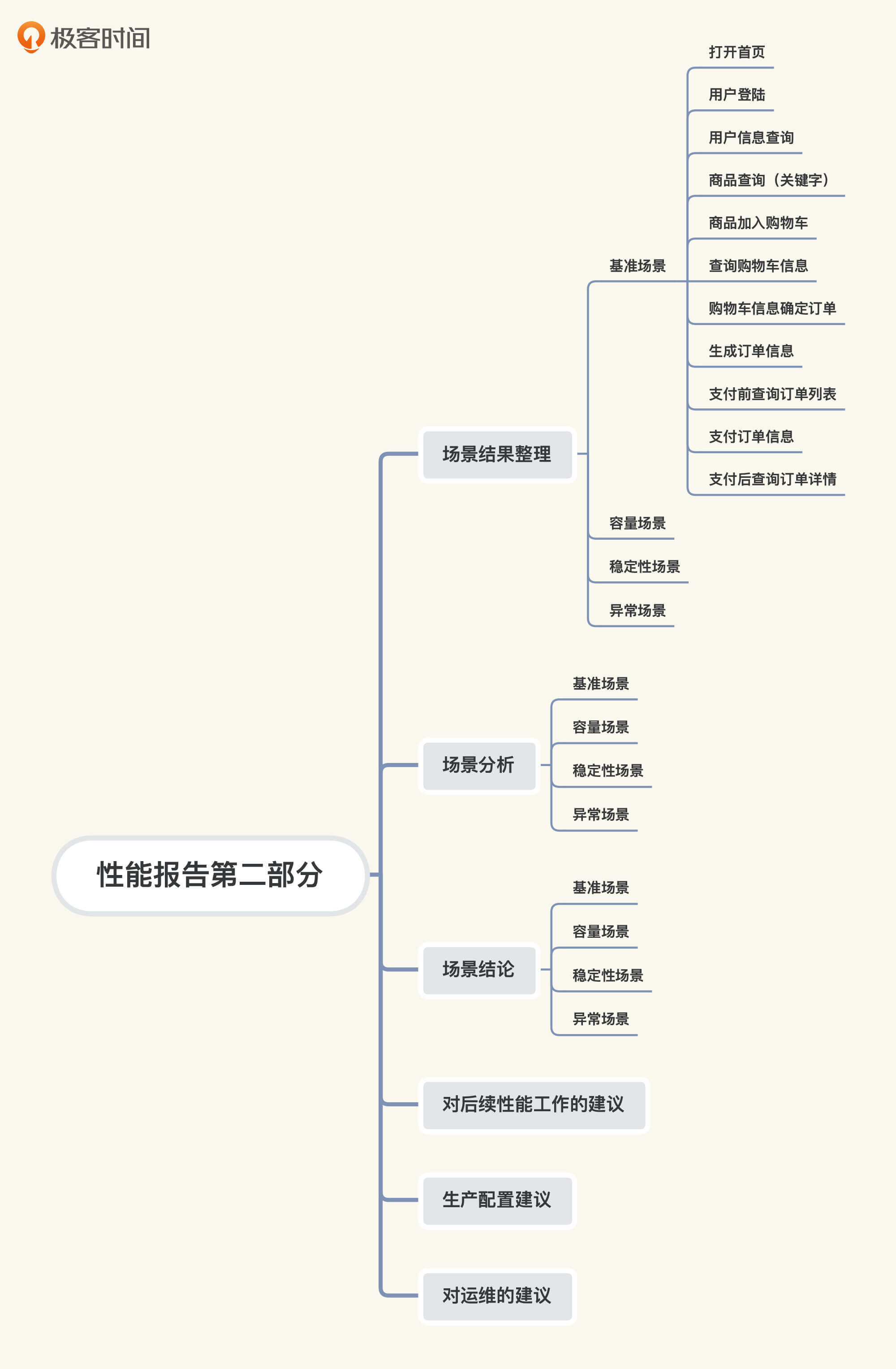 现在,我们对应这个结构,看一看在我们这个课程的示例项目中,“场景结论”、“对后续性能工作的建议”、“生产配置建议”、“对运维的建议”分别是怎样的。