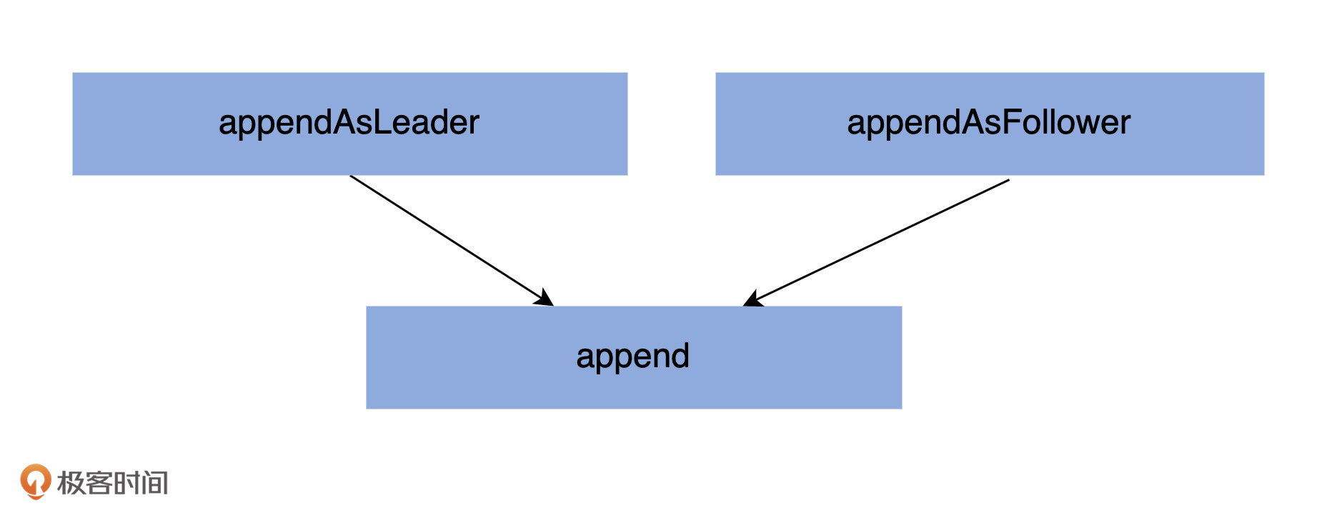 就像我刚才说的,Follower副本成功拉取Leader副本的消息后必须更新高水位值,但Producer端向Leader副本写入消息时,分区的高水位值就可能不需要更新——因为它可能需要等待其他Follower副本同步的进度。因此,源码中定义了两个更新的方法,它们分别应用于不同的场景。