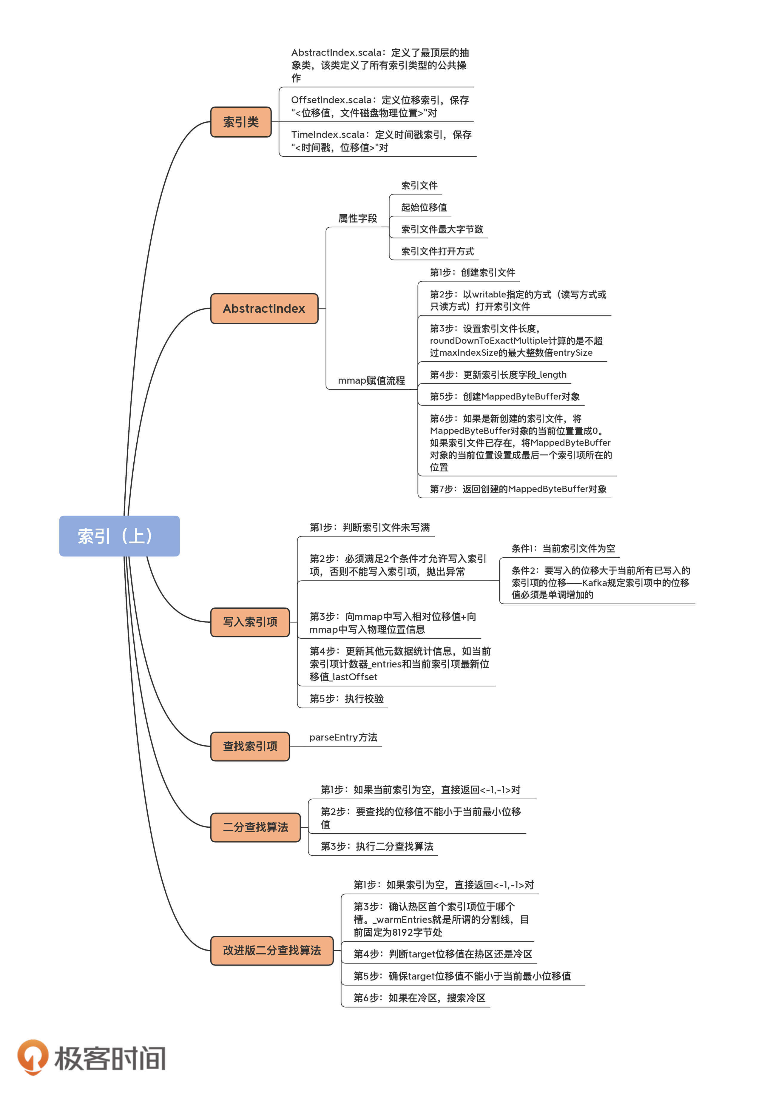 今天,我带你详细学习了Kafka中的索引机制,以及社区如何应用二分查找算法实现快速定位索引项。有两个重点,你一定要记住。