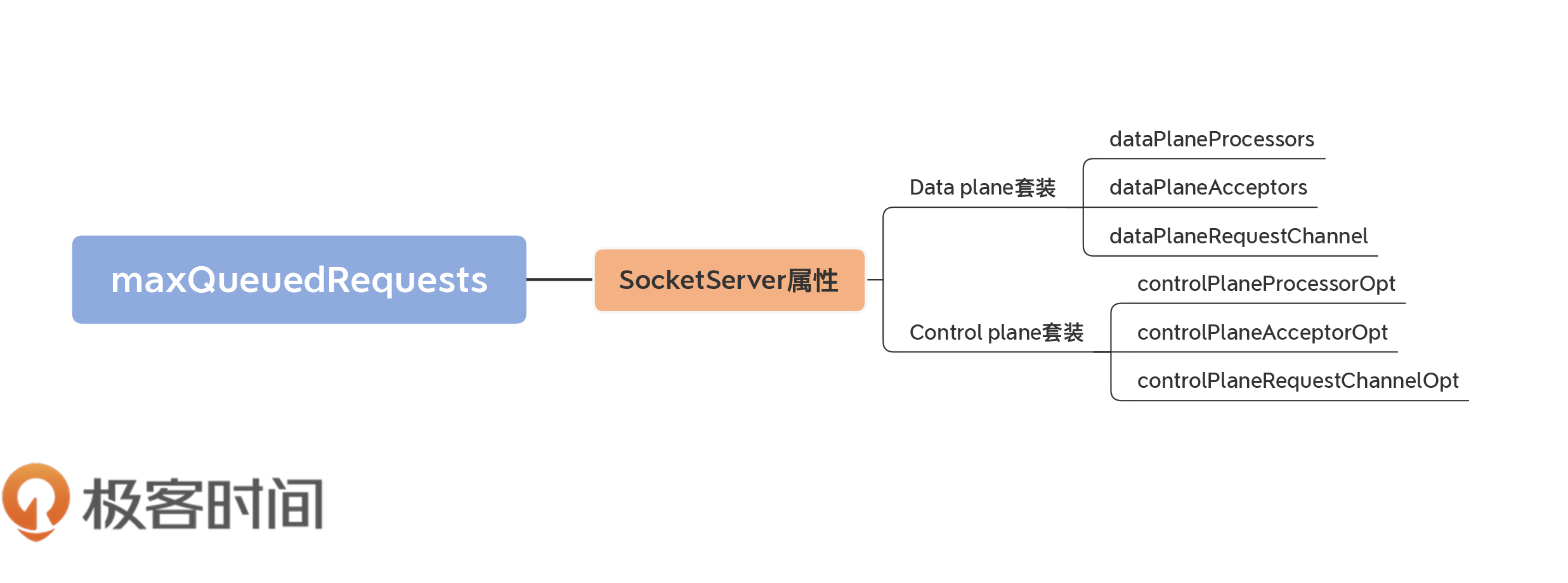 首先,SocketServer类定义了一个maxQueuedRequests字段,它定义了请求队列的最大长度。默认值是Broker端queued.max.requests参数值。