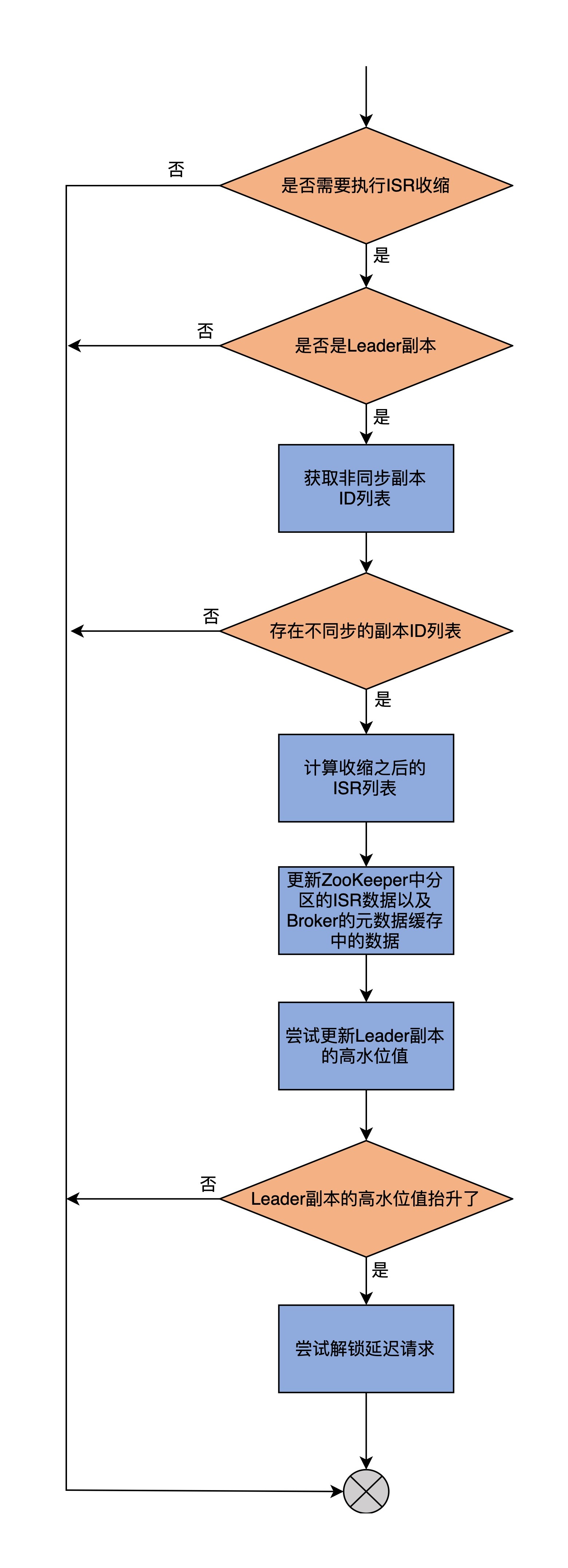 - 第1步,判断是否需要执行ISR收缩。主要的方法是,调用needShrinkIsr方法来获取与Leader不同步的副本。如果存在这样的副本,说明需要执行ISR收缩。