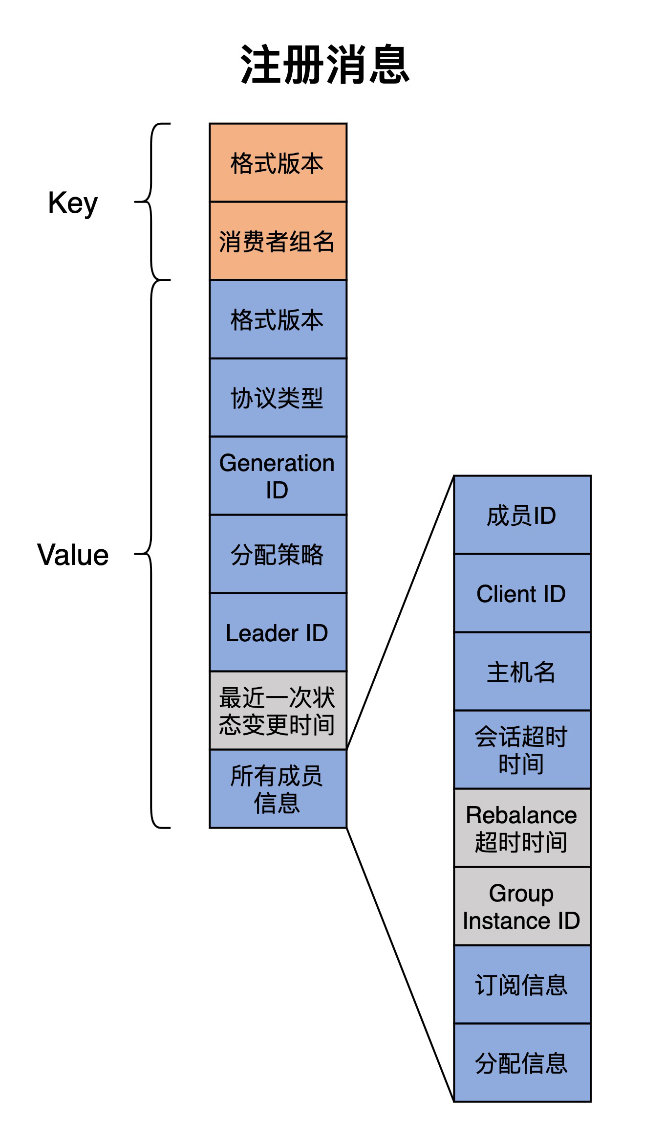 关于注册消息Key和Value的内容,我就介绍完了。为了帮助你更直观地理解注册消息到底包含了什么数据,我再用一张图向你展示一下它们的构成。
