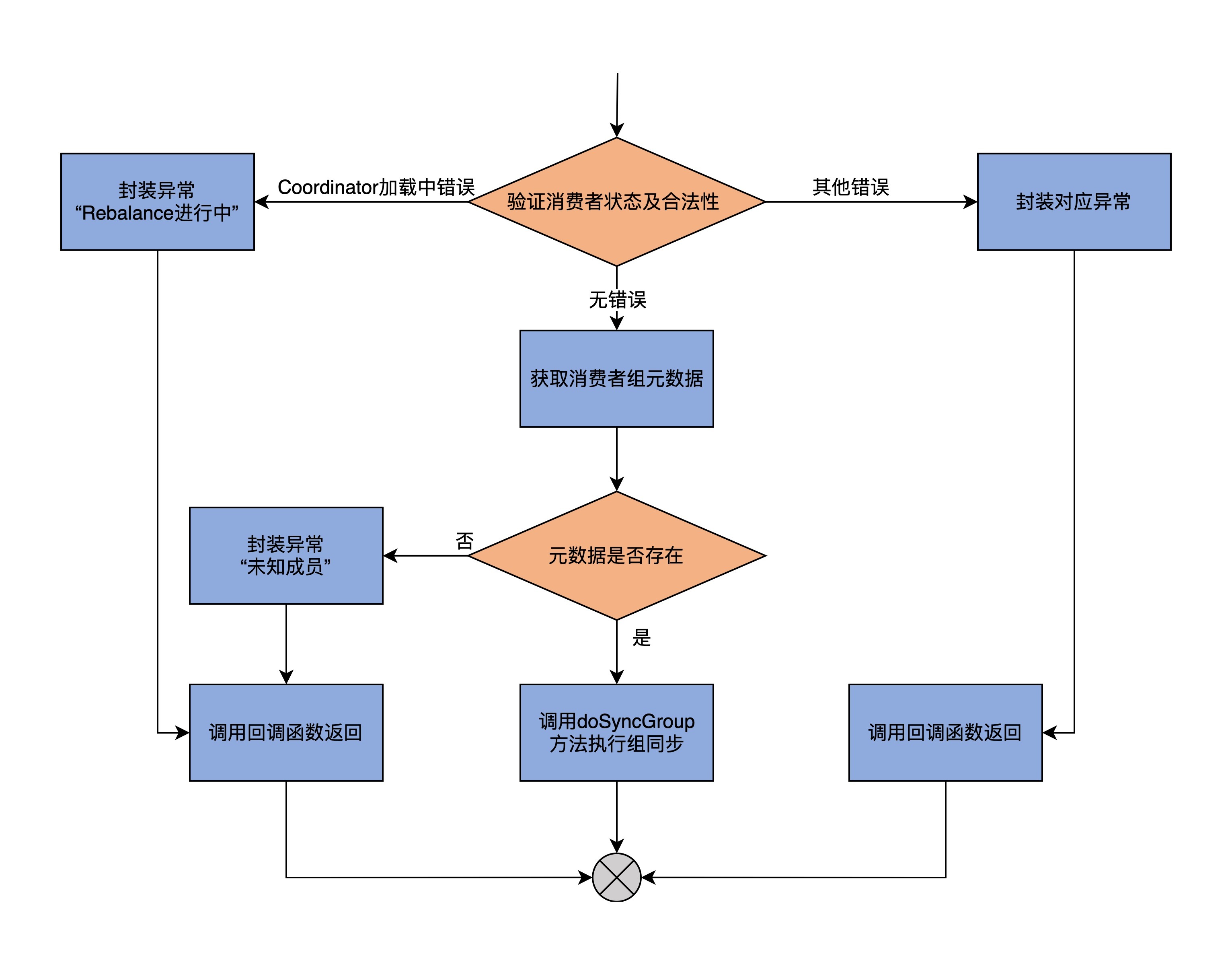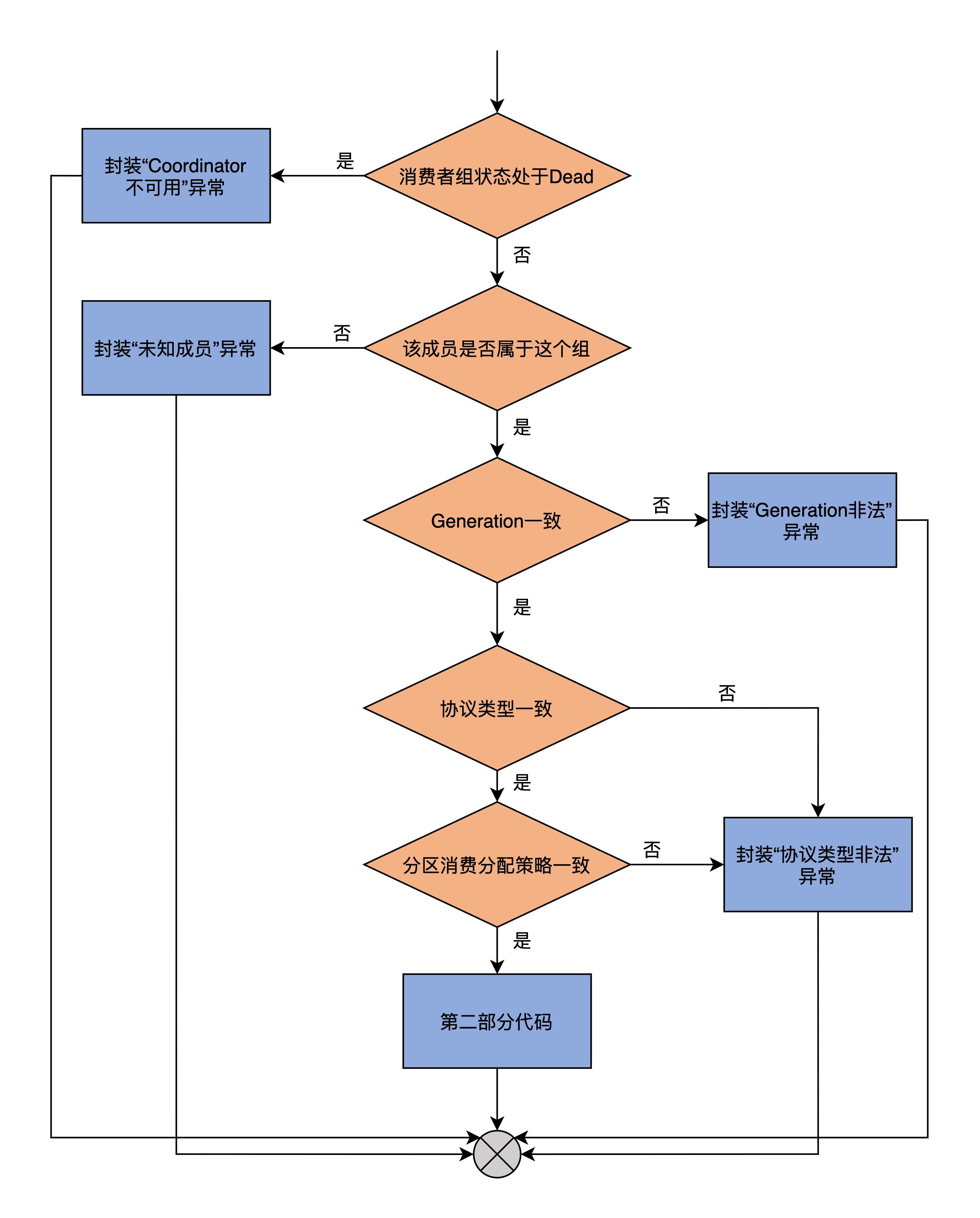 - 第1部分:主要对消费者组做各种校验,如果没有通过校验,就封装对应的异常给回调函数;