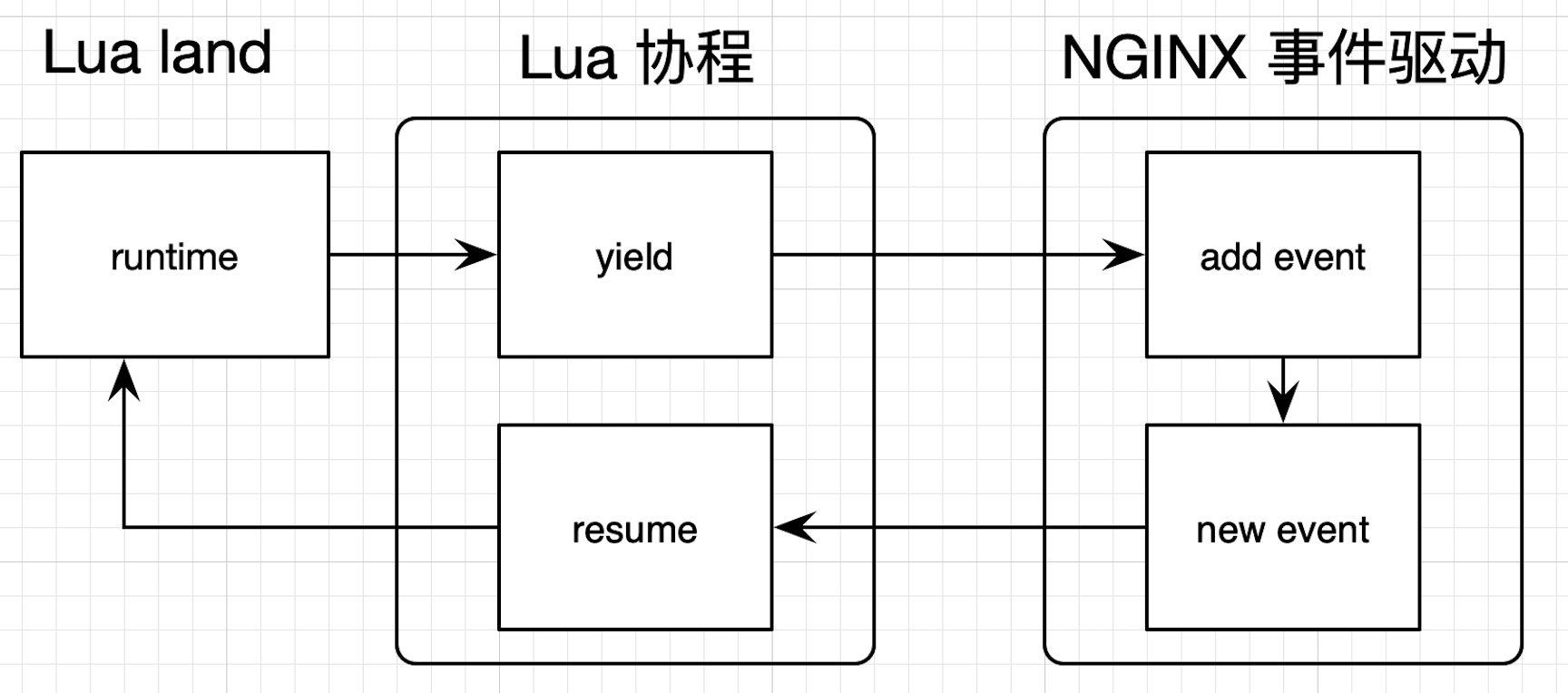 lua_yield把 Lua 协程挂起,把控制权交给 NGINX 的事件循环。