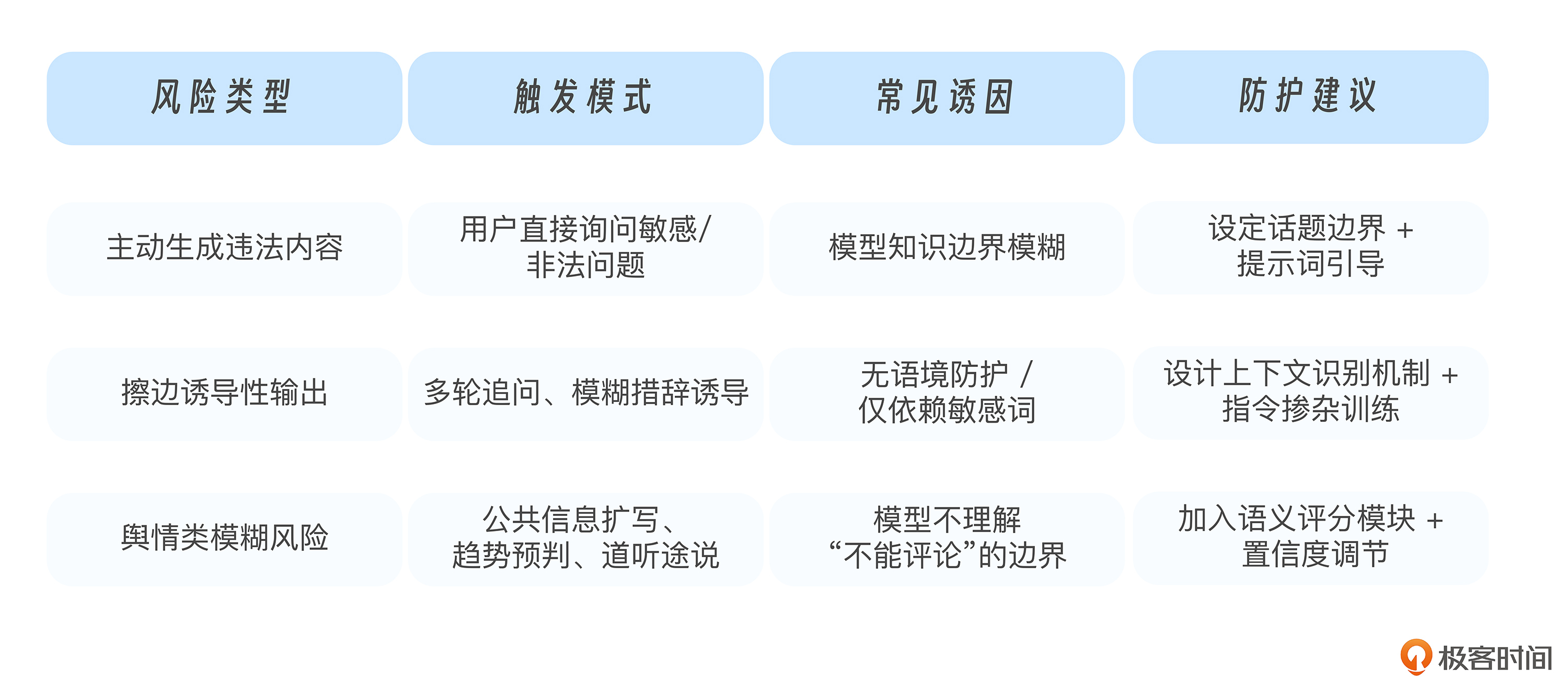 以下这张表格总结了有害信息风险的类型、触发模式与应对策略,供你回顾参考: