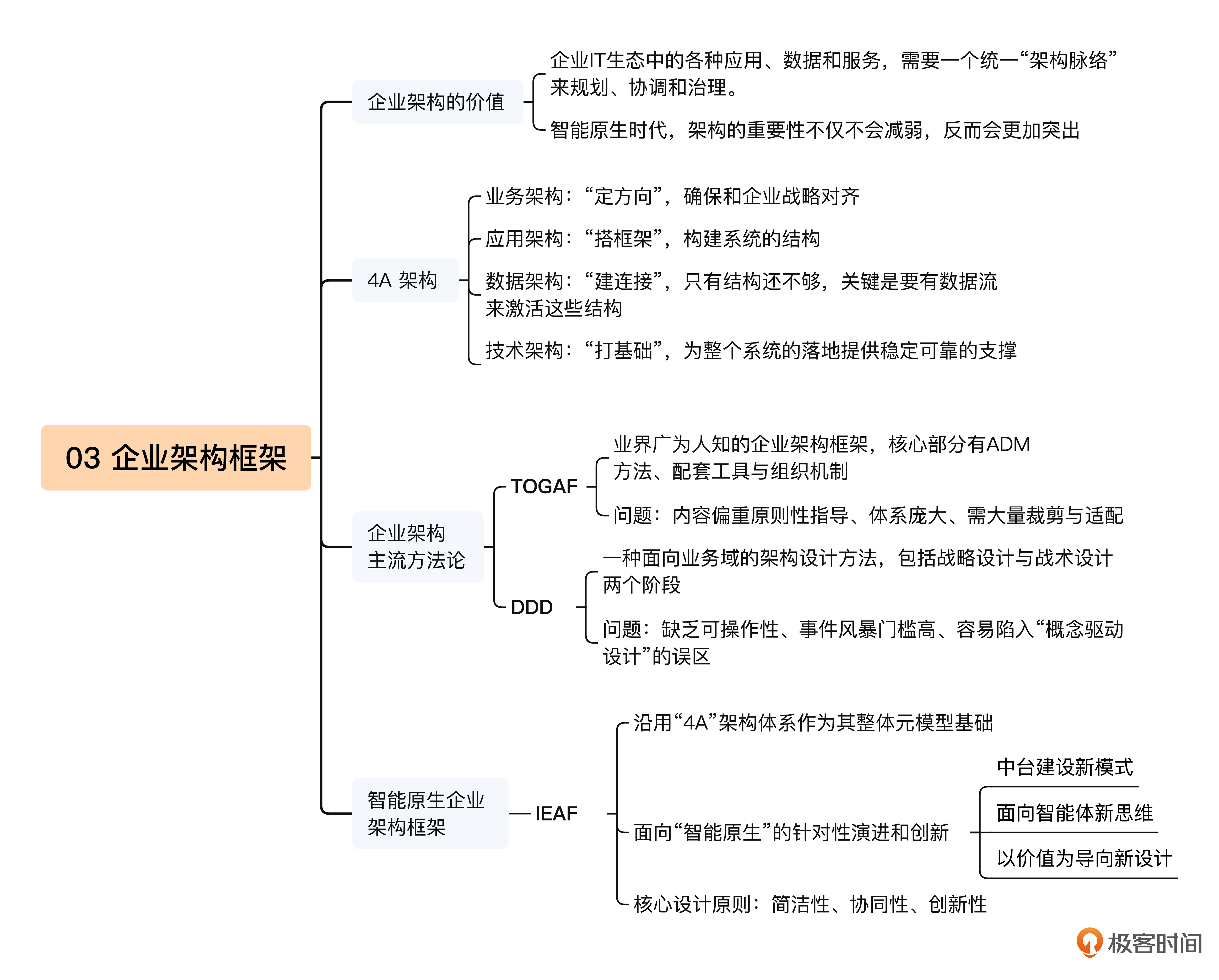 在《技术的本质》一书中提到,技术创新的本质是一种组合的进化。因此,智能原生企业架构也是企业架构在与智能化相遇之后,它自身从设计理念、架构方法到指导原则等一系列的变化。在方法篇的后续课程中,我还会详细展开讲讲IEAF框架,敬请期待。