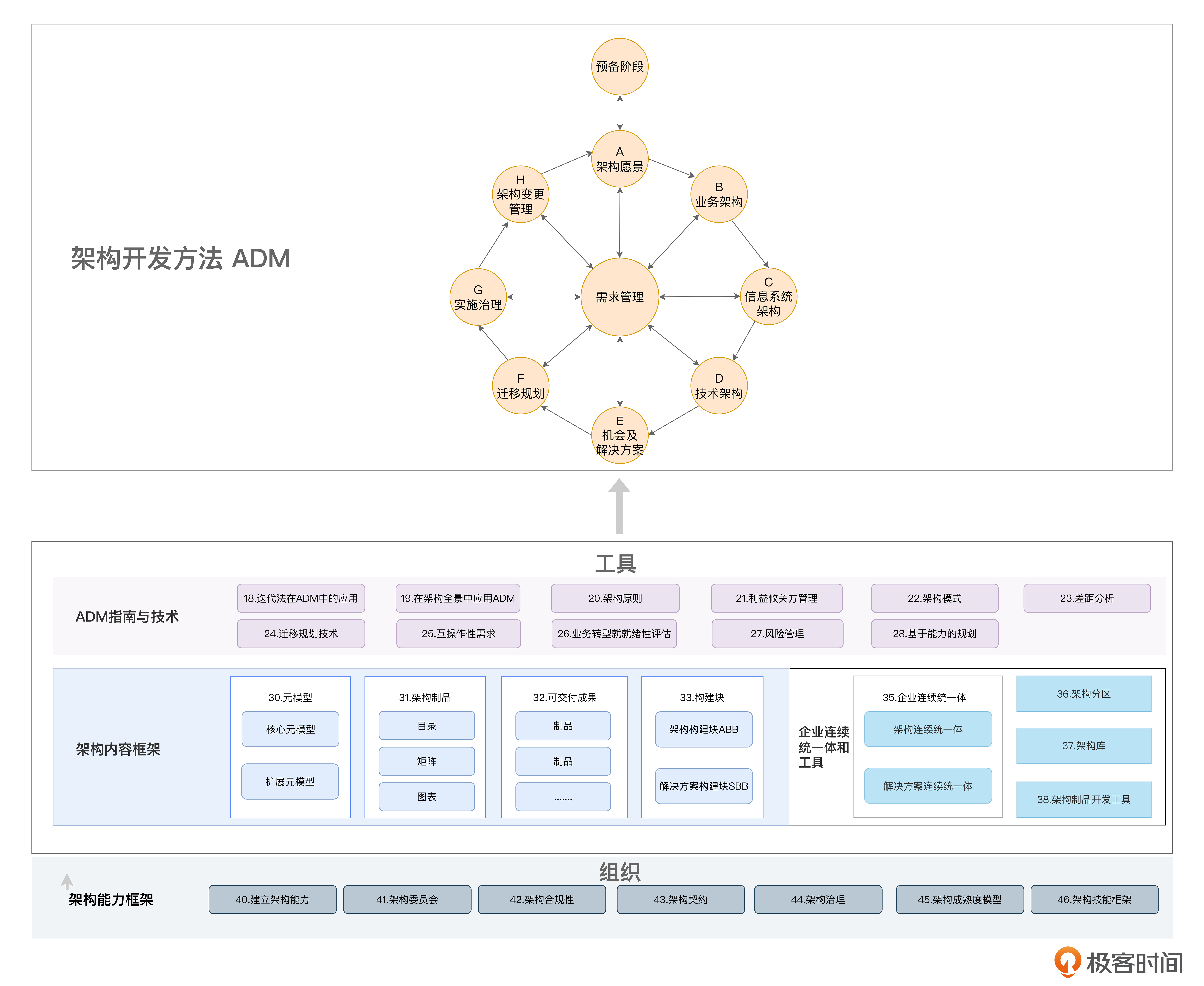 方法(ADM) 是TOGAF的核心内容,是一套结构化的架构开发流程,包含一套系统化、阶段化的实施过程。