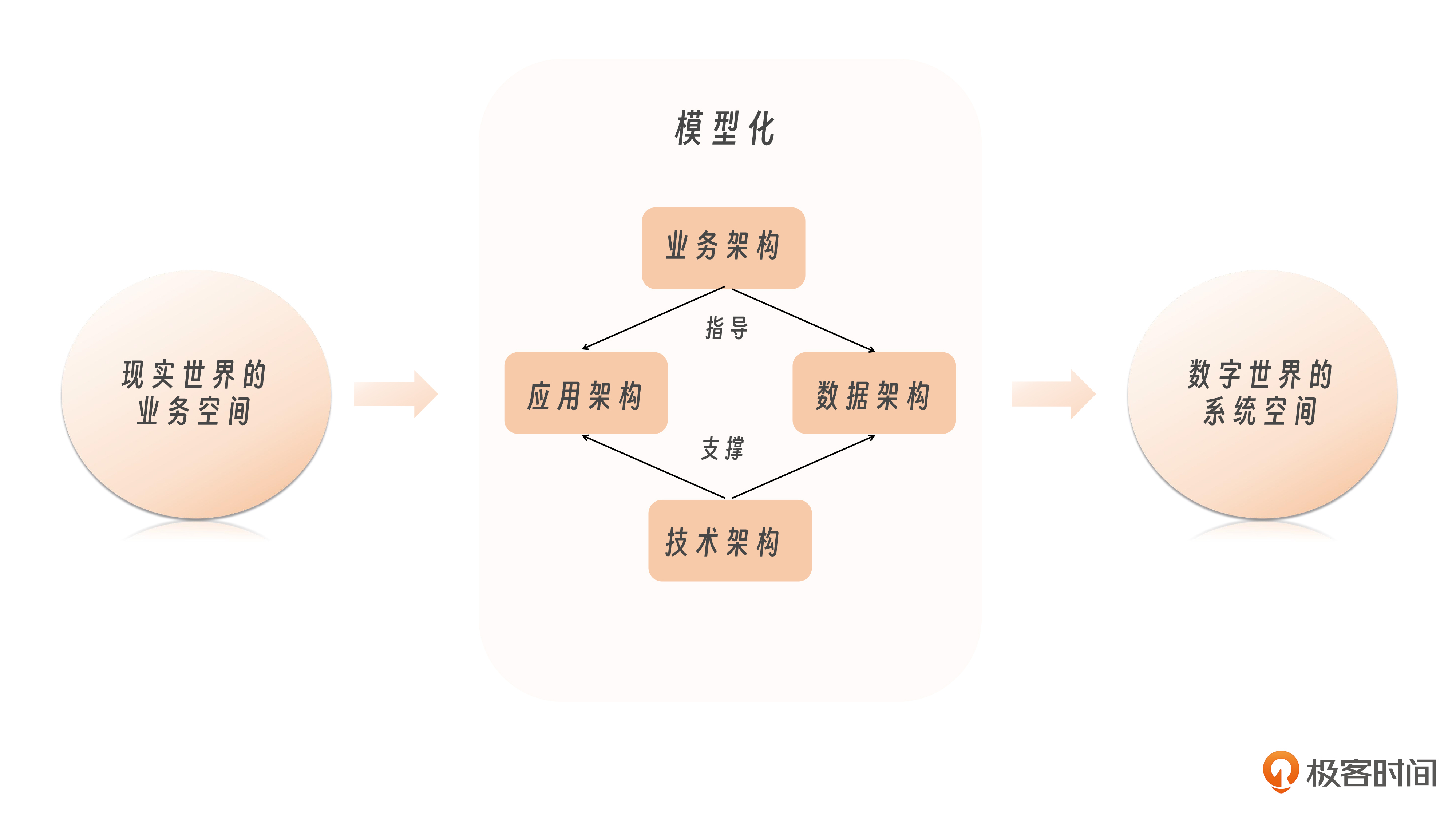 简单来说,企业架构是一套系统化的方法论体系,其核心作用在于指导企业如何将现实世界中的业务空间,有效映射与转化到数字世界的系统空间。