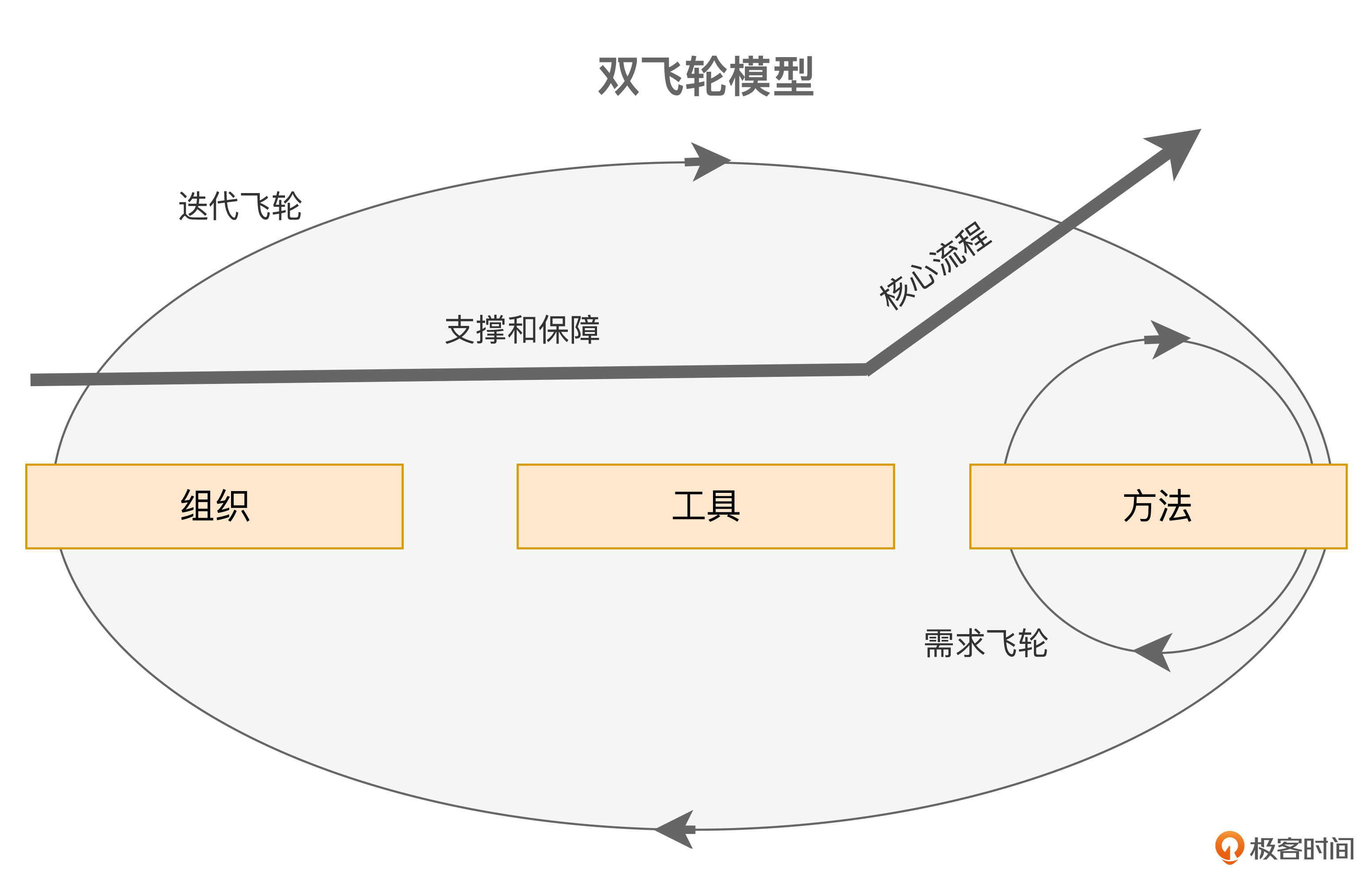 如果对图中内容进行进一步提炼和简化,其实可以将其归纳为一个“双飞轮模型”。其中,三个核心组成部分职责如下。