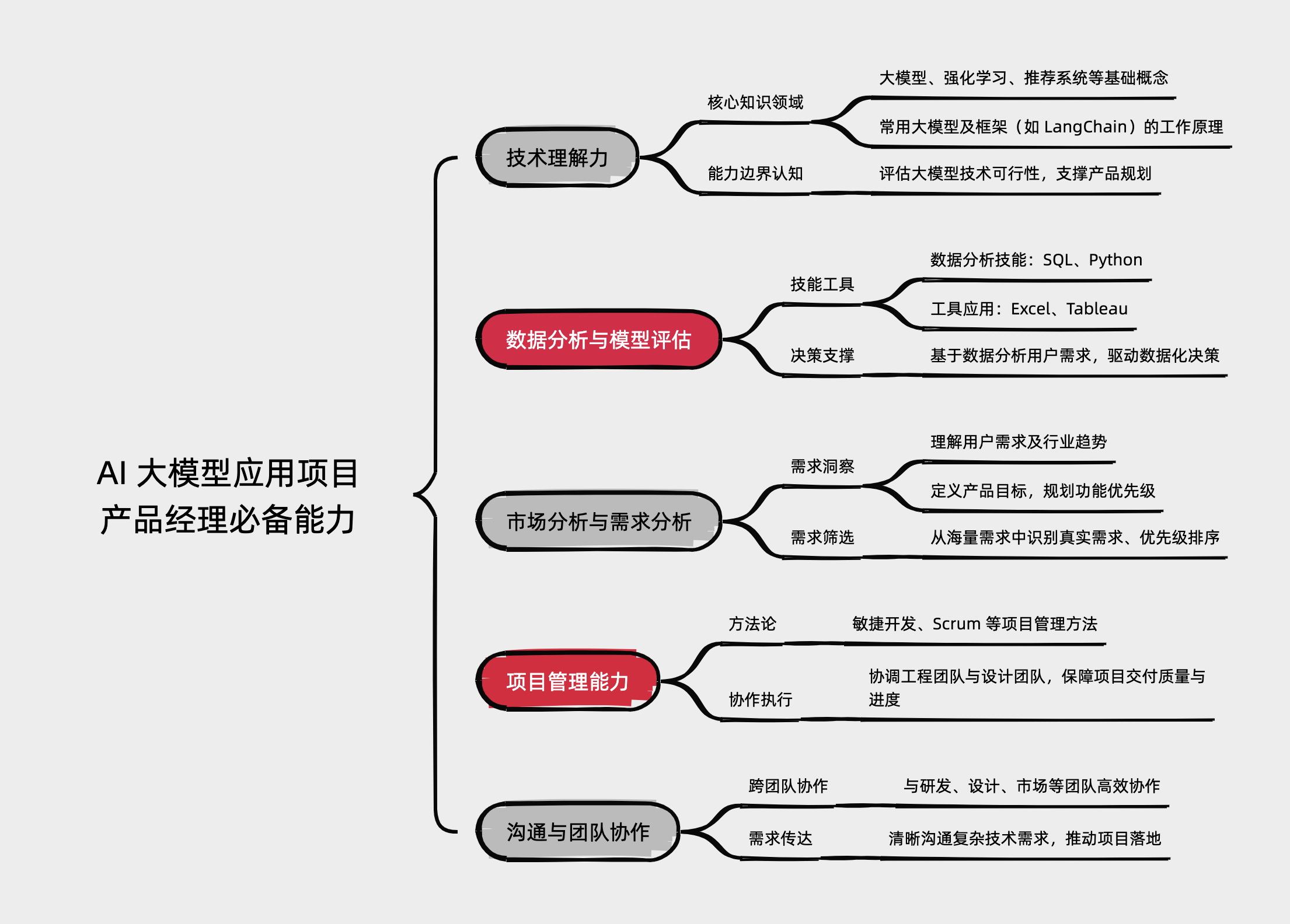 a. 技术理解力:学习和理解大模型、强化学习、推荐系统等基础概念,特别是常用大模型和框架(如 LangChain)的工作原理。了解大模型的能力边界,这样你才能更好地评估技术可行性,从而制定合理的产品规划。