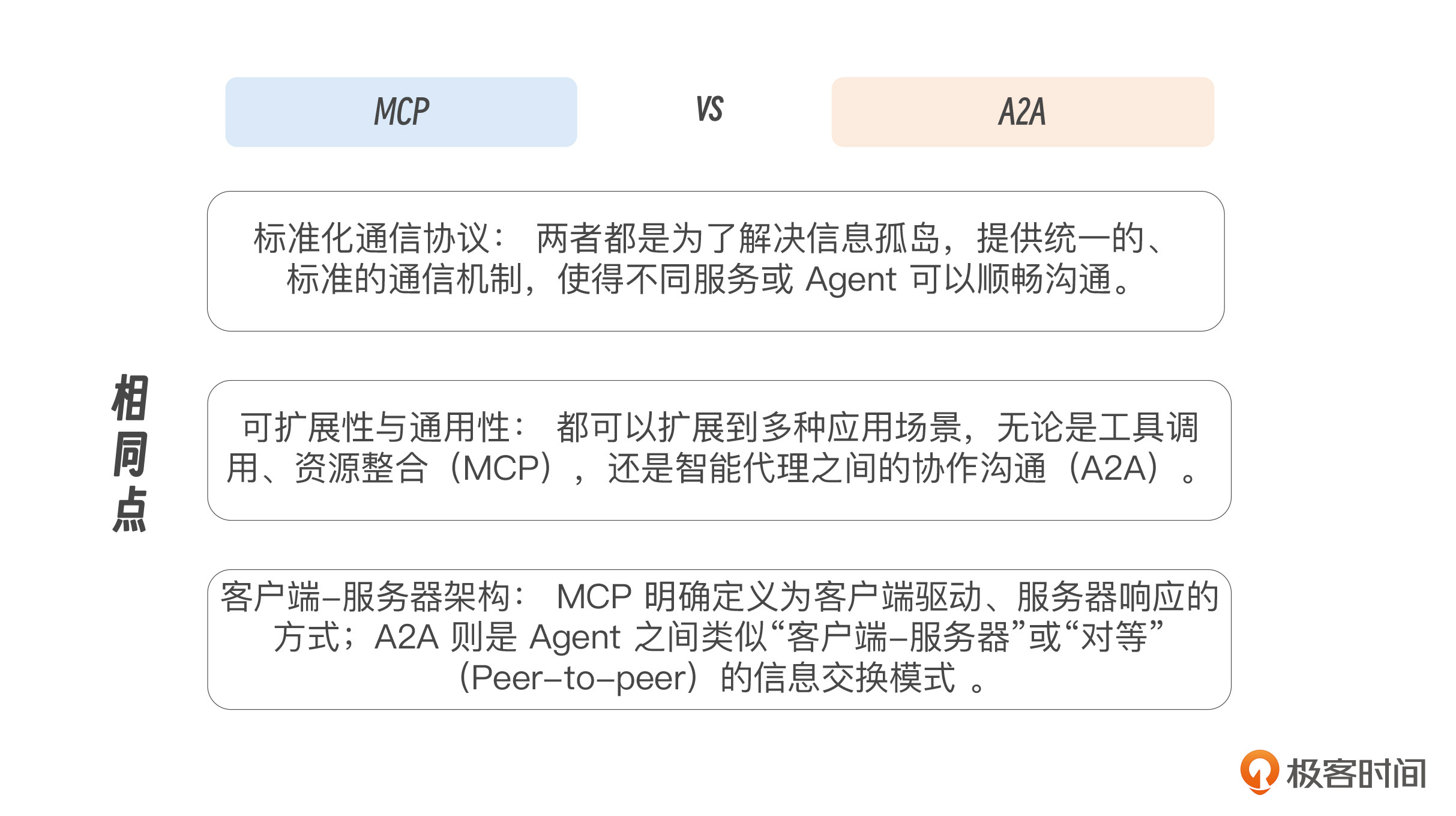 MCP让AI能更好的使用外部工具的协议,A2A是为了让不同Agent更好的协作,这些都是技术层面的。