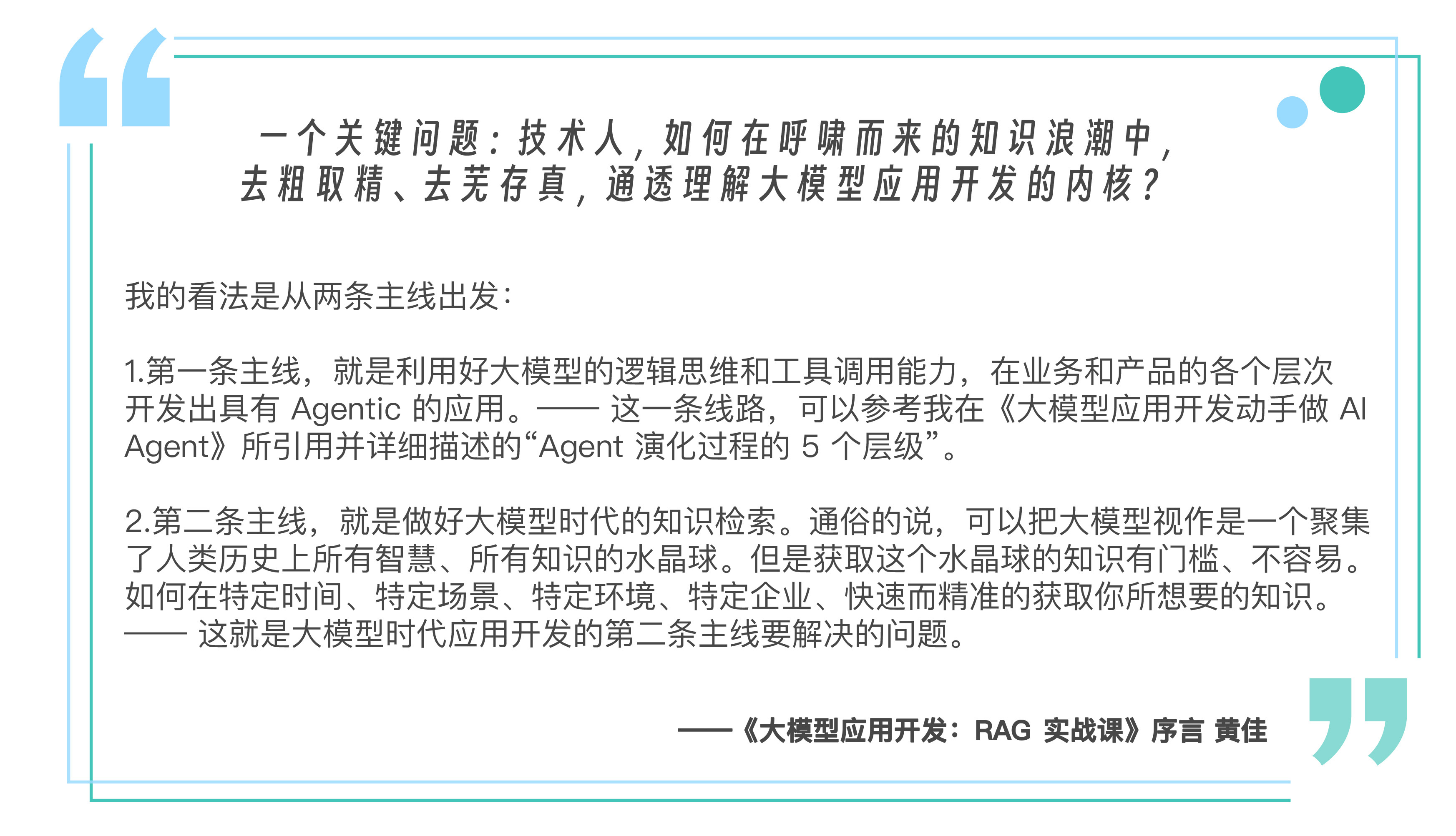 以上所说的RAG和Agent,就是大模型应用开发的目前最常用,也最通用的两个范式。