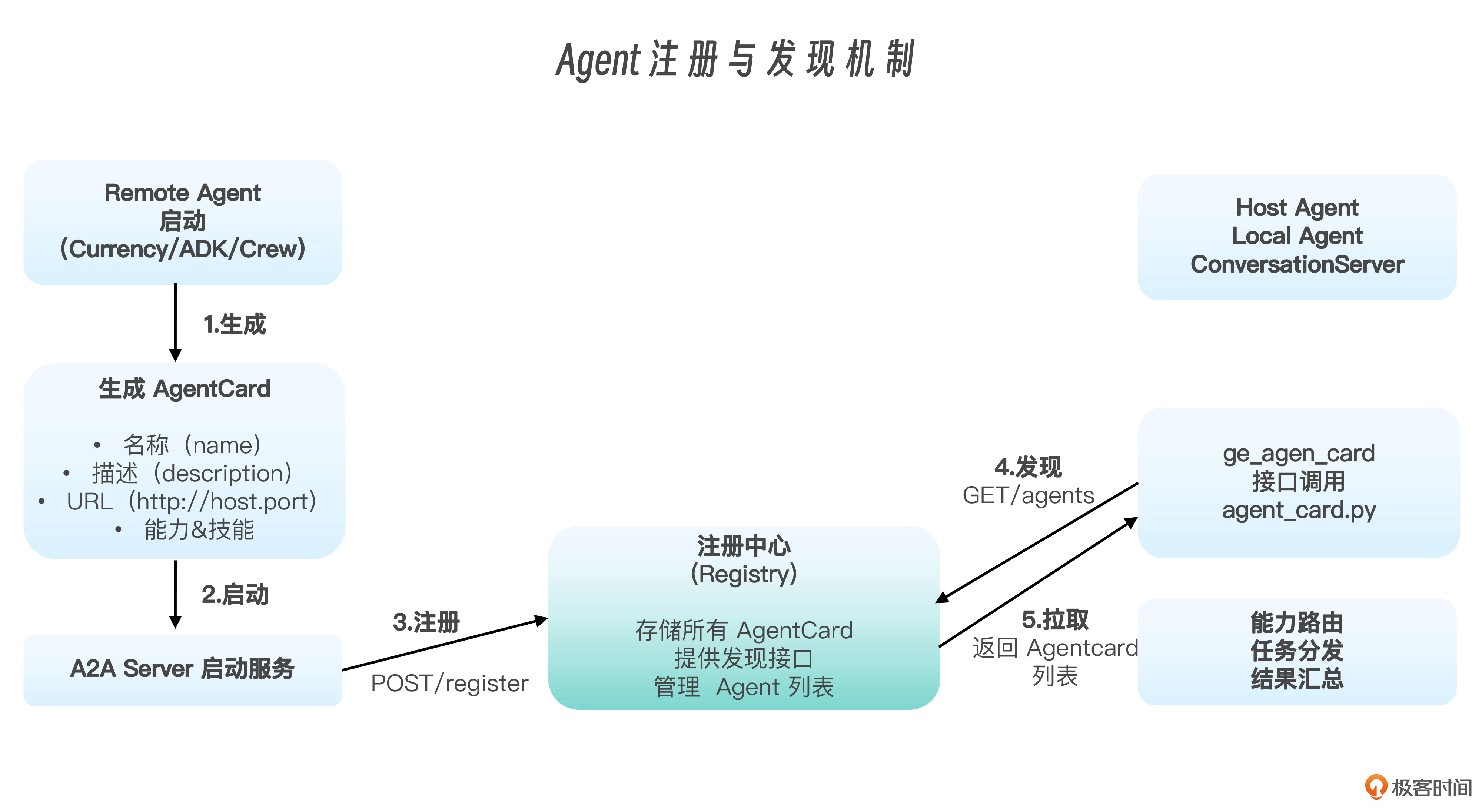 def register_agent(self, url),支持通过URL动态注册远程Agent,Agent信息会被加入 _agents 列表,供Host调度。