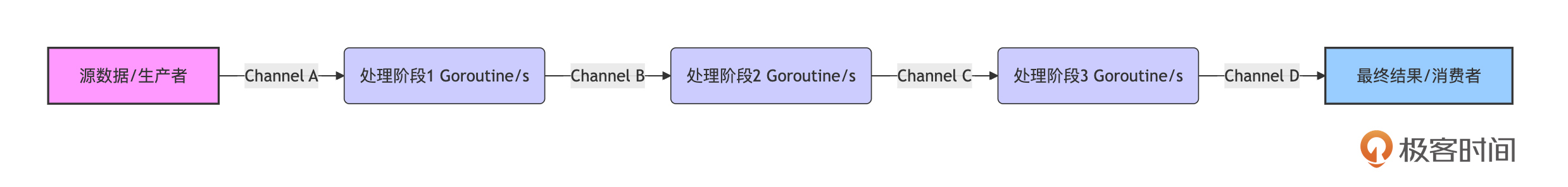 数据处理流水线(Pipeline):每个阶段是一个或多个goroutine,通过channel连接。每个阶段的goroutine都应该能够响应上游传入的